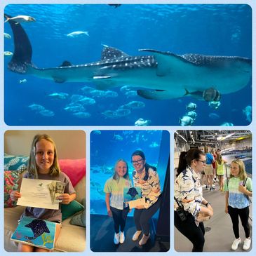 Emma was able to visit the GA Aquarium in August 2022 and gift them a donation from her sales at SharkCon!